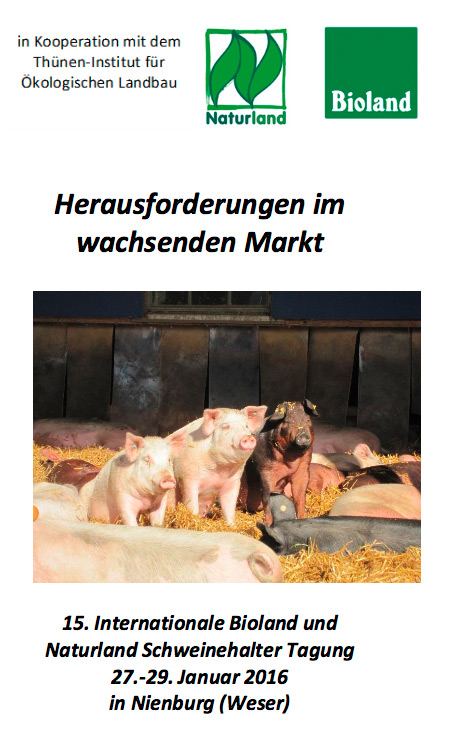 Die Verbände Bioland und Naturland laden in Kooperation mit dem Thünen-Institut für Ökologischen Landbau zur Internationalen Bio-Schweinehaltertagung vom 27. bis 29. Januar 2016 nach Nienburg an der Weser ein.